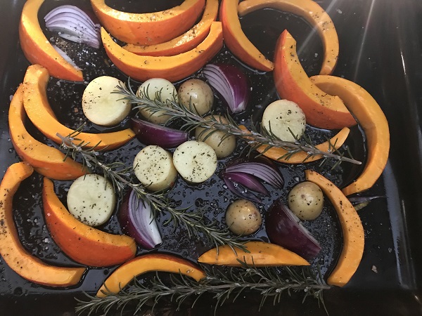gegrillte Auberginen mit Tomatenreis und Zuckerrüben | gegrillter Hokkaido mit Kartoffeln und roter Zwiebel | Kabeljau mit gegrilltem Blumenkohl |
