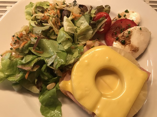 der gute alte Hawaitoast | Fritatta mit Schinken und Brötchenscheiben | buntes Gemüse mit Bratwursteinlage und Kokosmilch |