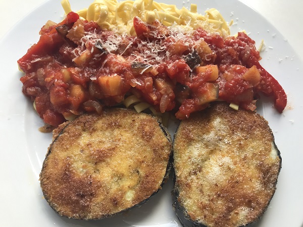Fritatta mit Kabanossi und Paprikam gemischtem Salat | panierte Auberginen mit Paprika-Zucchinigemüse und Nudeln | Tomatenreis, Fisch und Gemüse |