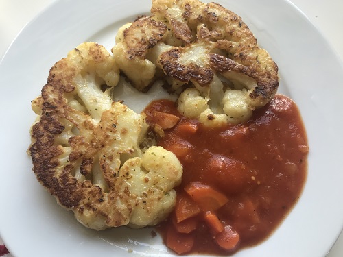 Königsberger Klopse, mein erster Versuch | Gegrillte Tomaten auf griechischen Joghurt. Rezept einer lieben Kundin | Blumenkohlscheibe in Mehl und Ei gebraten |