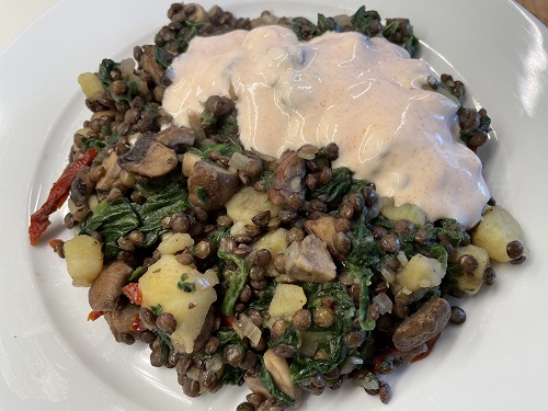 Quinoa mit Paprika-Pilzgemüse und Schweinefilet | Pilzgemüse mit Ackersalat | Linsencurry mit Möhren, Staudensellerie, Fenchel und rote Linsen |